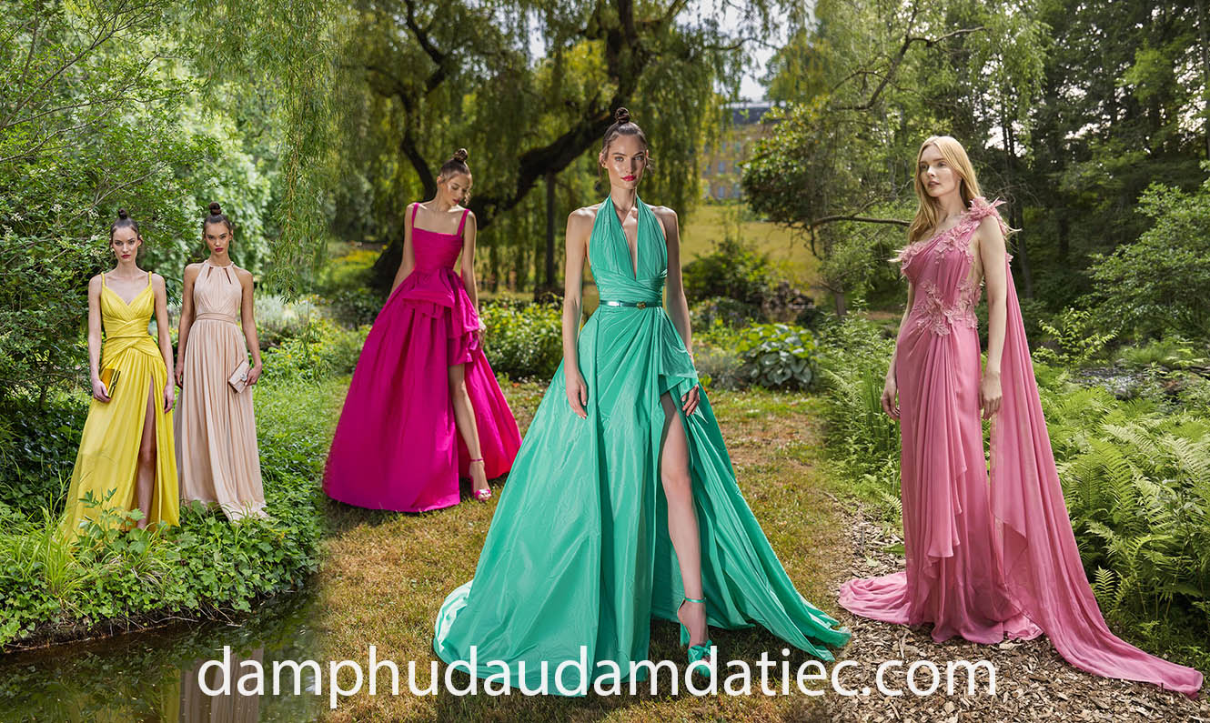 Mùa thu – mùa lãng mạn nhất trong năm đang đến gần kề. Đây là mùa thích hợp để các quý cô diện lên người những mẫu đầm dạ hội nhẹ nhàng, thơ mộng tựa như những Nữ thần xinh đẹp và cao sang, dạo bước trên những khu vườn ngập nắng vàng ươm, hay trong những phòng dạ vũ sang trọng. Các tone màu được yêu thích nhất thường mang gam trung tính như màu vàng của lá, tone nude tôn da, ánh vàng đồng thời thượng, màu xanh lá nhạt, sắc tím lilac sành điệu,… đi cùng những chất liệu nhẹ, thoáng mát và bay bổng như lưới, lụa, satin,… sẽ mang đến cho bạn vô số gợi ý lý tưởng.