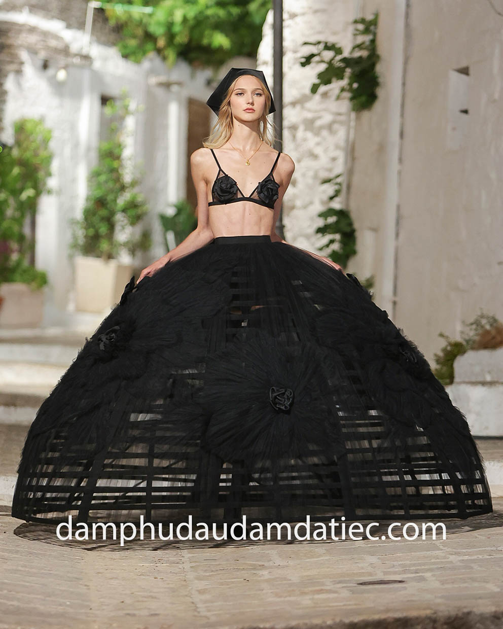 Trong thế giới thời trang, đầm dạ hội Haute Couture là dòng váy cao cấp nhất và luôn được coi như một chuẩn mực thiết kế. Với mức độ đầu tư lớn, những mẫu váy xa hoa này được thực hiện trên các chất liệu thượng hạng, hiếm có, ứng dụng kỹ thuật may đo cao cấp, đi cùng các chi tiết trang trí đặc sắc nhất. Mỗi chiếc váy mất ít nhất hàng trăm và thậm chí cả nghìn giờ thực hiện hoàn toàn thủ công, để cho ra đời những thiết kế đẹp đến từng li từng tí. Không chỉ đơn thuần là một chiếc váy, đầm dạ hội Haute Couture là tác phẩm nghệ thuật thực thụ khẳng định giá trị và đẳng cấp thời trang thượng thừa mà bất kỳ tín đồ yêu thời trang nào cũng đều khao khát.