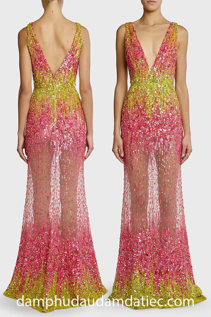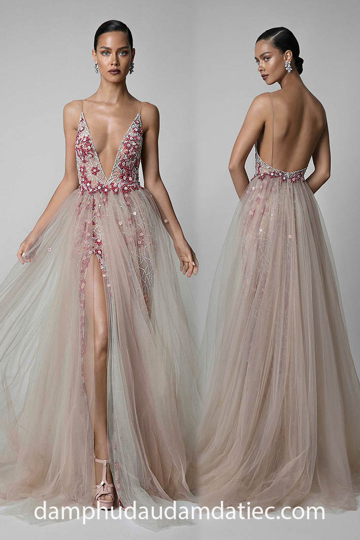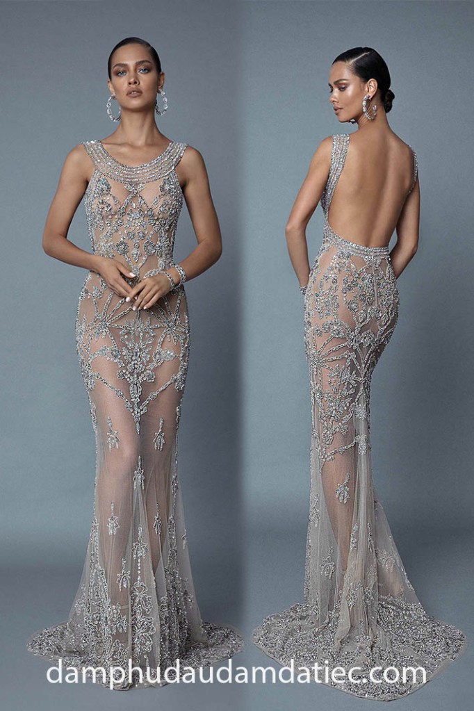 Dành tặng các quý cô yêu vẻ đẹp cơ thể của bản thân, đầm dạ hội hở lưng xuyên thấu sẽ là lựa chọn hoàn hảo giúp bạn khai thác trọn vẹn lợi thế hình thể hấp dẫn, đồng thời các chi tiết trang trí đính kết bắt mắt trên toàn bộ thân váy sẽ góp phần tạo nên những khoảnh khắc lung linh, ấn tượng nhất trong mắt tất cả mọi người.