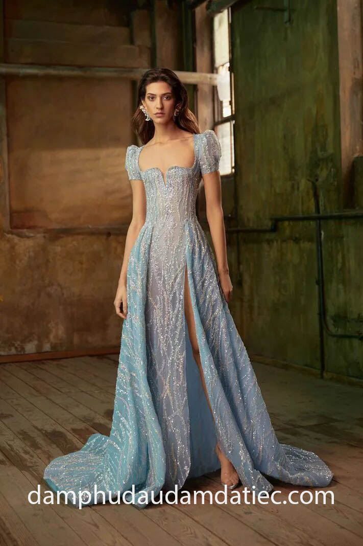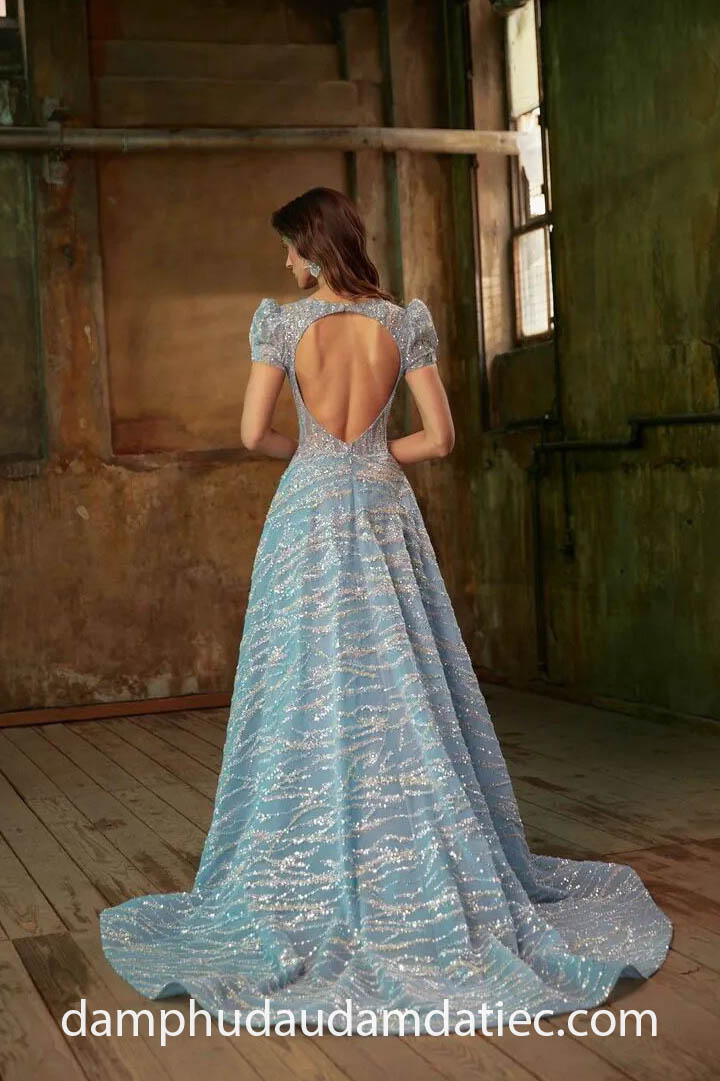 VÁY DẠ HỘI HỞ LƯNG PHỐI TAY KIỂU