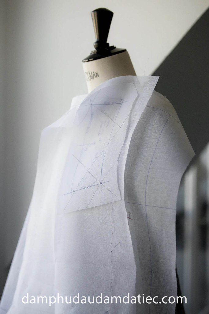 Tiến hành dựng phom dáng theo số đo và tỉ lệ cơ thể của khách.