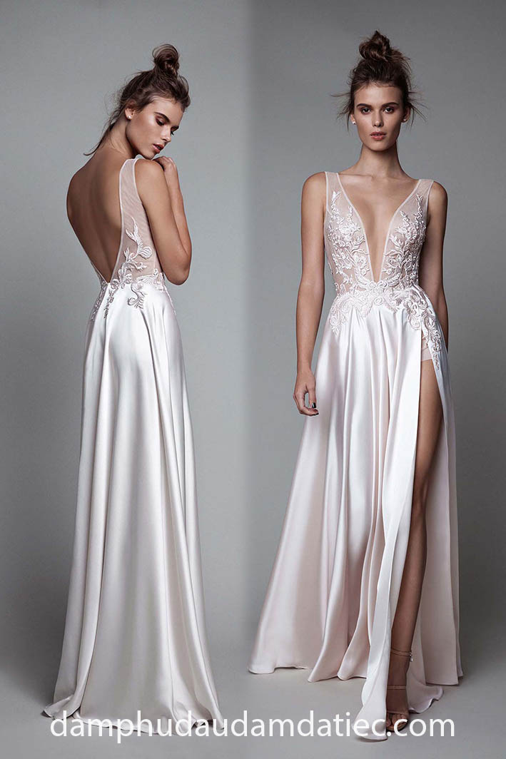 Trong khi đó, kiểu đầm dự tiệc hở lưng xẻ tà sẽ là lựa chọn đầy hấp dẫn cho các cô nàng sành điệu mong muốn thu hút sự chú ý của bất kỳ ai mỗi khi xuất hiện. Sự kết hợp lý tưởng nhất là kiểu cổ áo 2 dây phối cùng chi tiết xẻ ngực sâu phía trước và mở ra tấm lưng trần phía sau, đi cùng đường xẻ tà khoe chân thon để hoàn thiện “combo” quyến rũ mọi ánh nhìn về phía bạn.