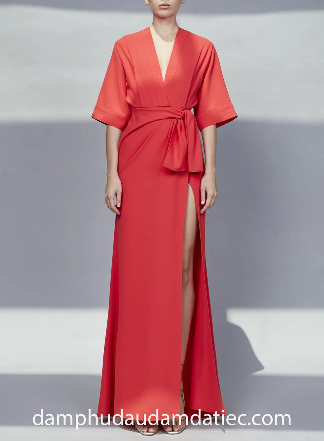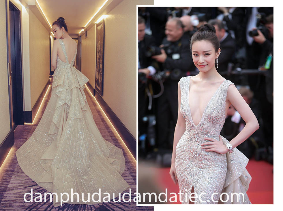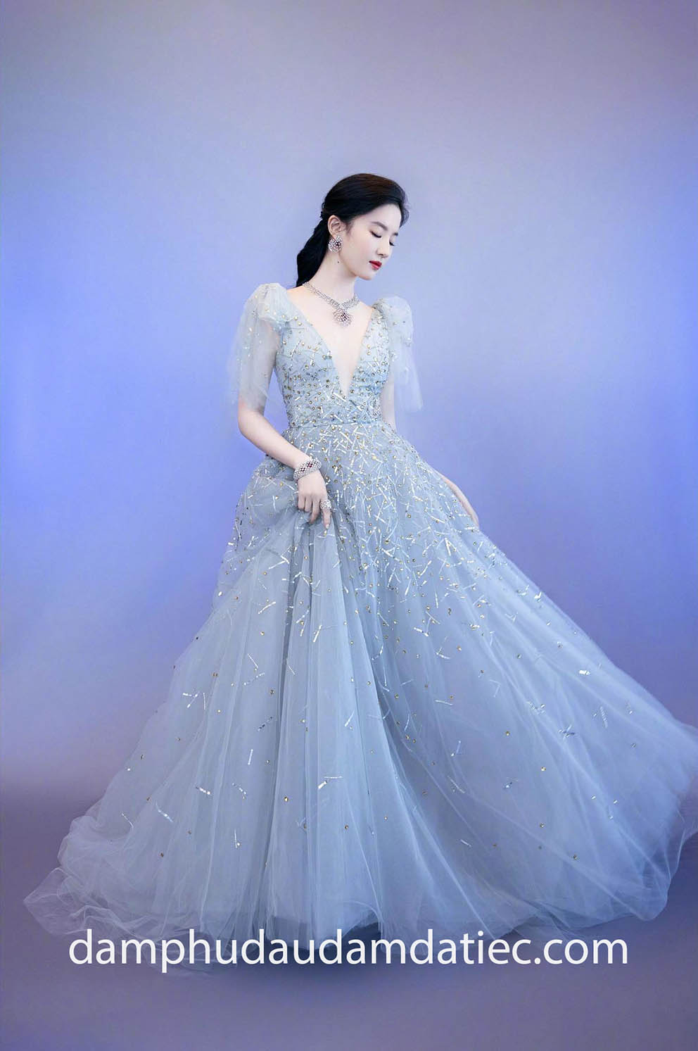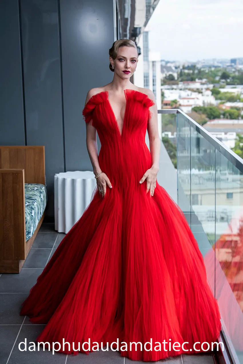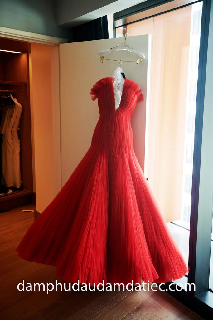 ĐẦM DỰ THẢM ĐỎ CỔ V THIẾT KẾ LỘNG LẪY