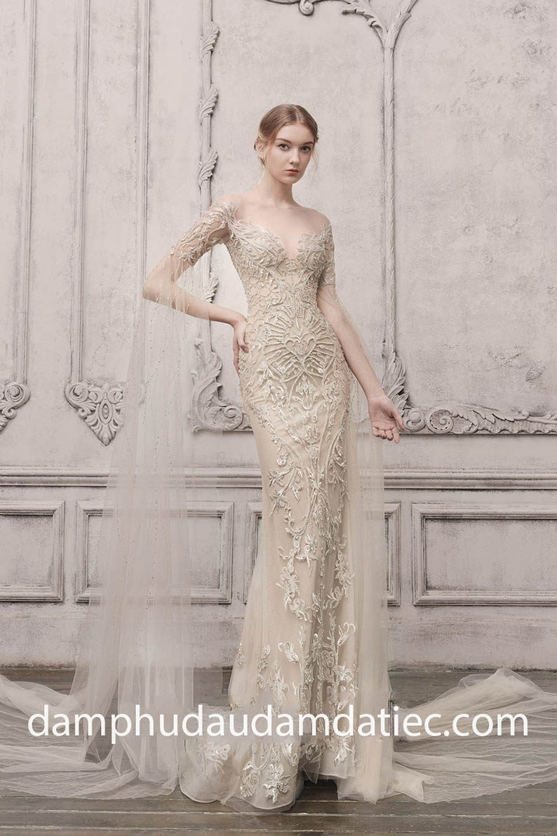 VÁY DẠ HỘI ÁO CHOÀNG CAPE MÀU DA