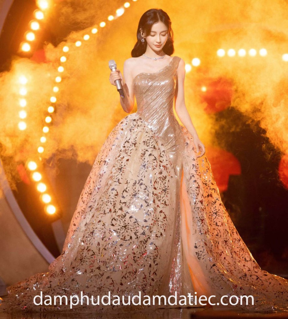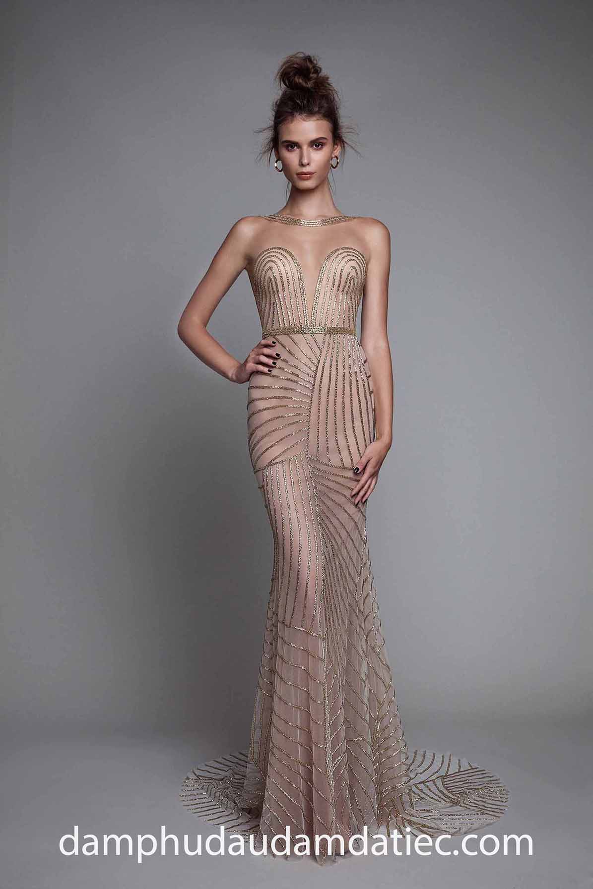 ĐẦM DẠ HỘI MÀU DA THIẾT KẾ RIÊNG LỘNG LẪY