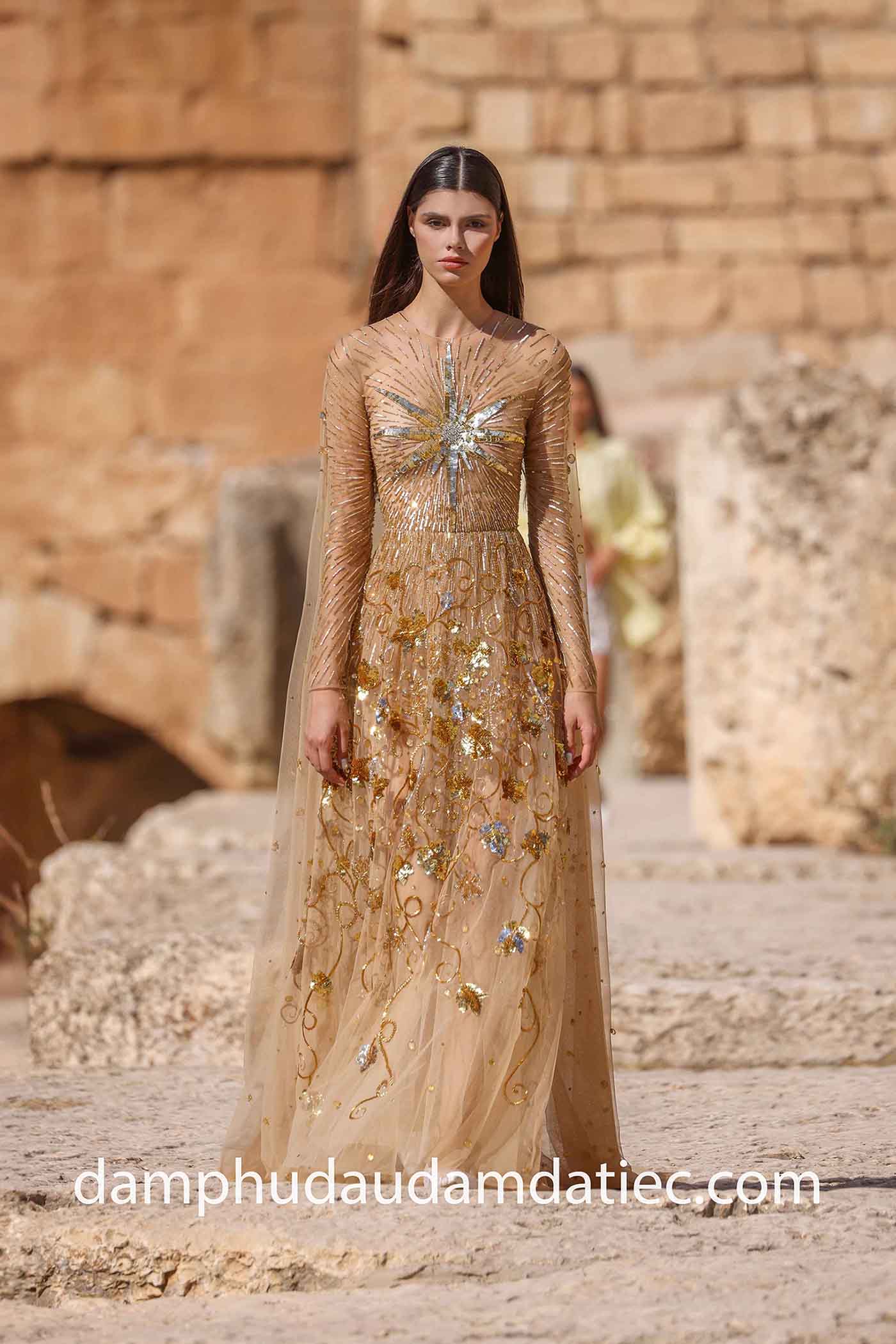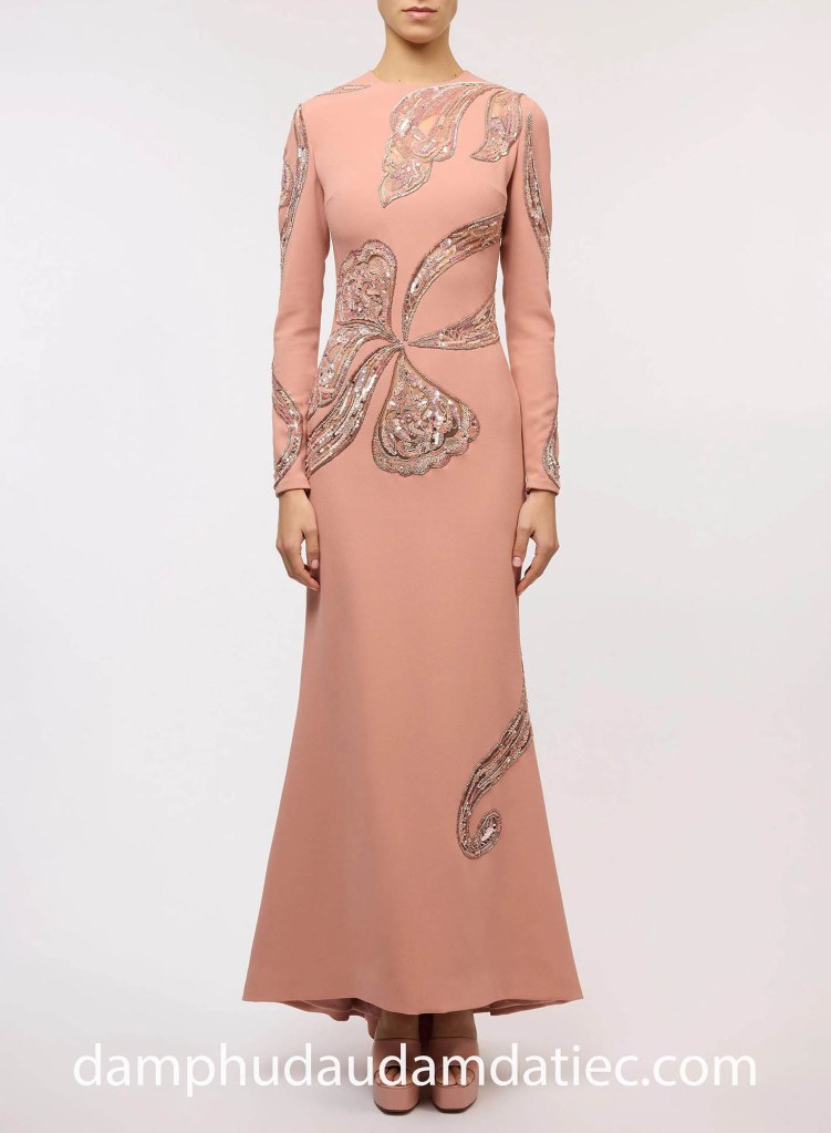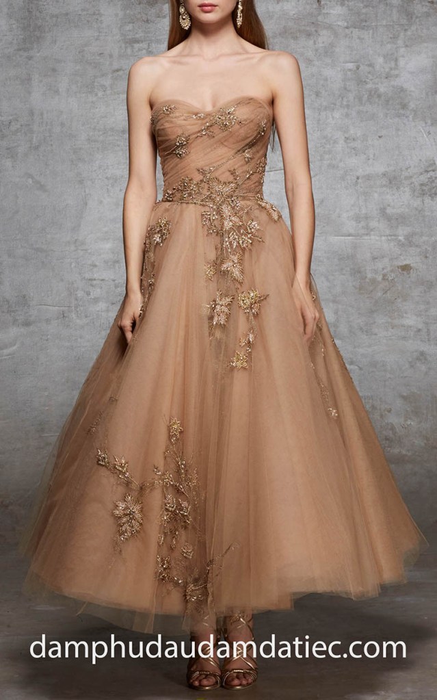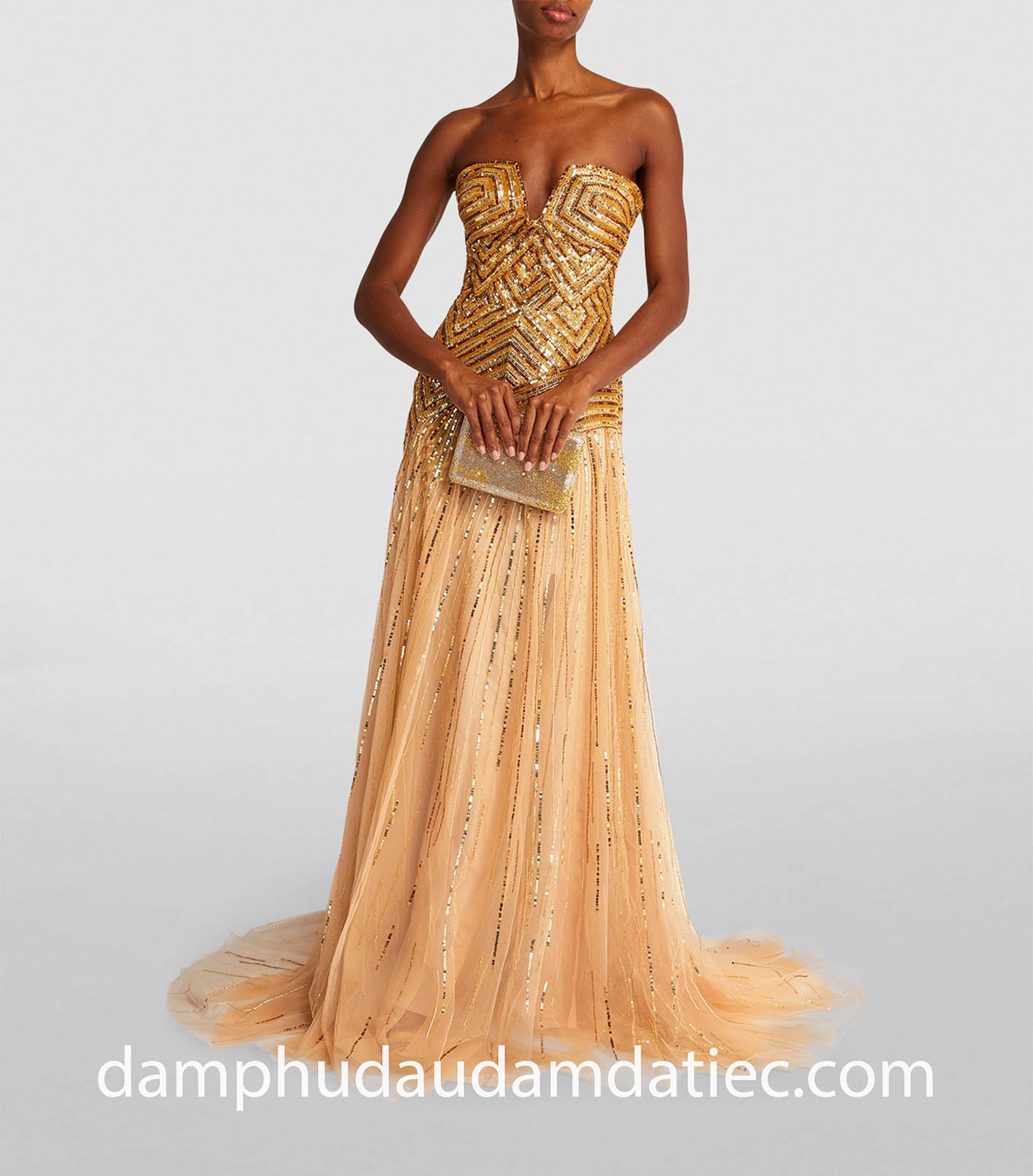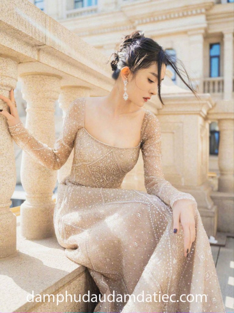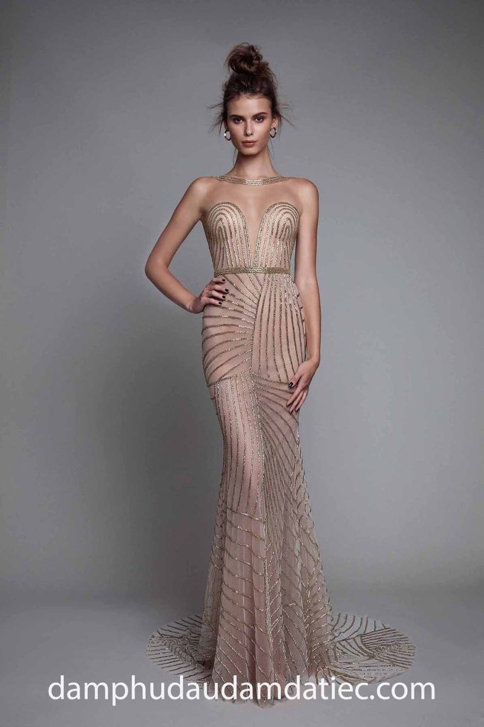 VÁY DẠ HỘI MÀU DA THIẾT KẾ CAO CẤP