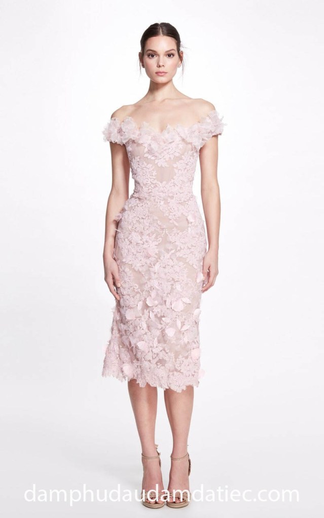 VÁY DỰ TIỆC MÀU DA PHỐI REN