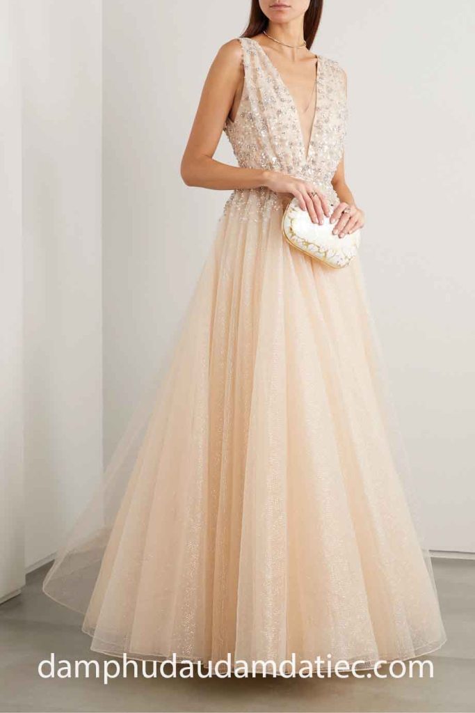 VÁY DẠ HỘI MÀU DA NHẸ NHÀNG