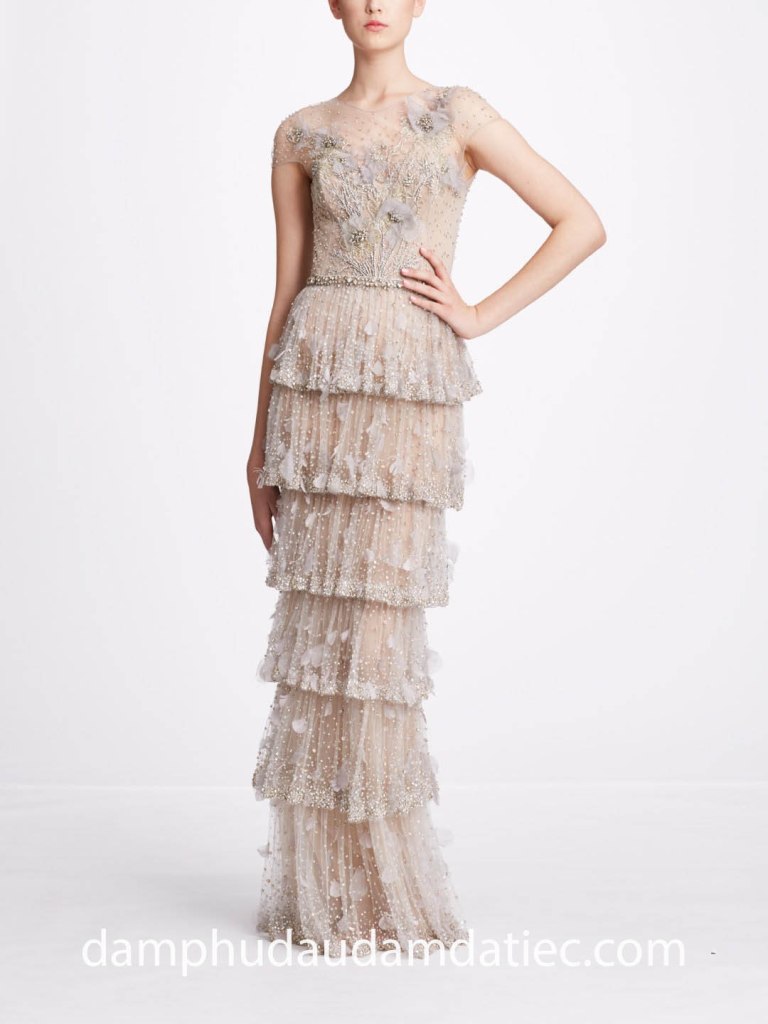 Còn với những cô nàng tiểu thư điệu đà–Kiểu váy dạ hội màu da xếp bèo tầng chắc chắn là một gợi ý thú vị mà bạn nên tham khảo cho tủ đồ “hàng thửa” của mình. Vẻ ngoài nữ tính, sành điệu phối hợp khéo léo các chi tiết trang trí xử lý bèo tầng tinh tế, hứa hẹn sẽ dẫn lối bạn tiến thẳng vào trung tâm “thảm đỏ” mà trong đó, chính bạn sẽ là nhân vật trung tâm của mọi ánh nhìn.