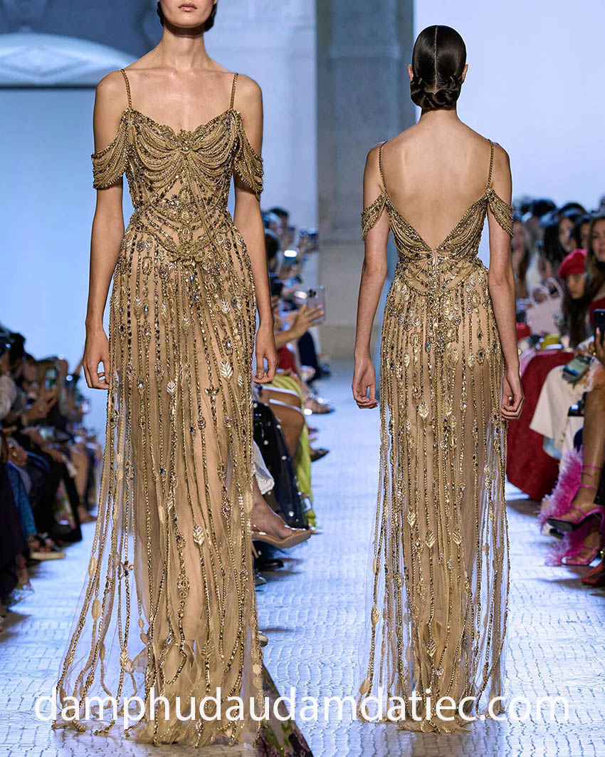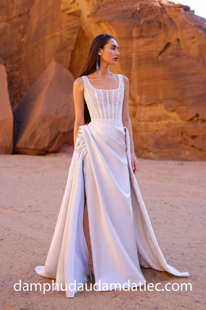 Basque waist evening gowns reign supreme in the anticipated fashion trends. The regal and elegant V-shape detail accentuates the allure of your silhouette, offering a chance to embody the essence of captivating individual on your special occasions.