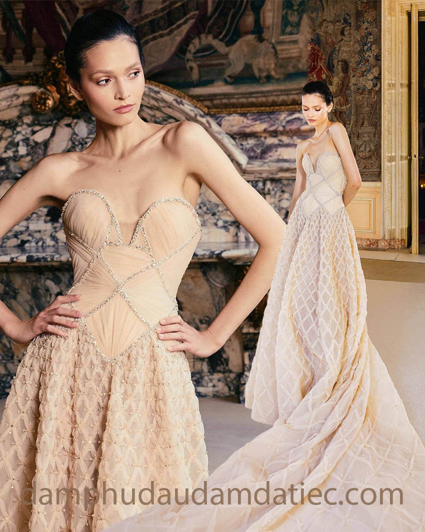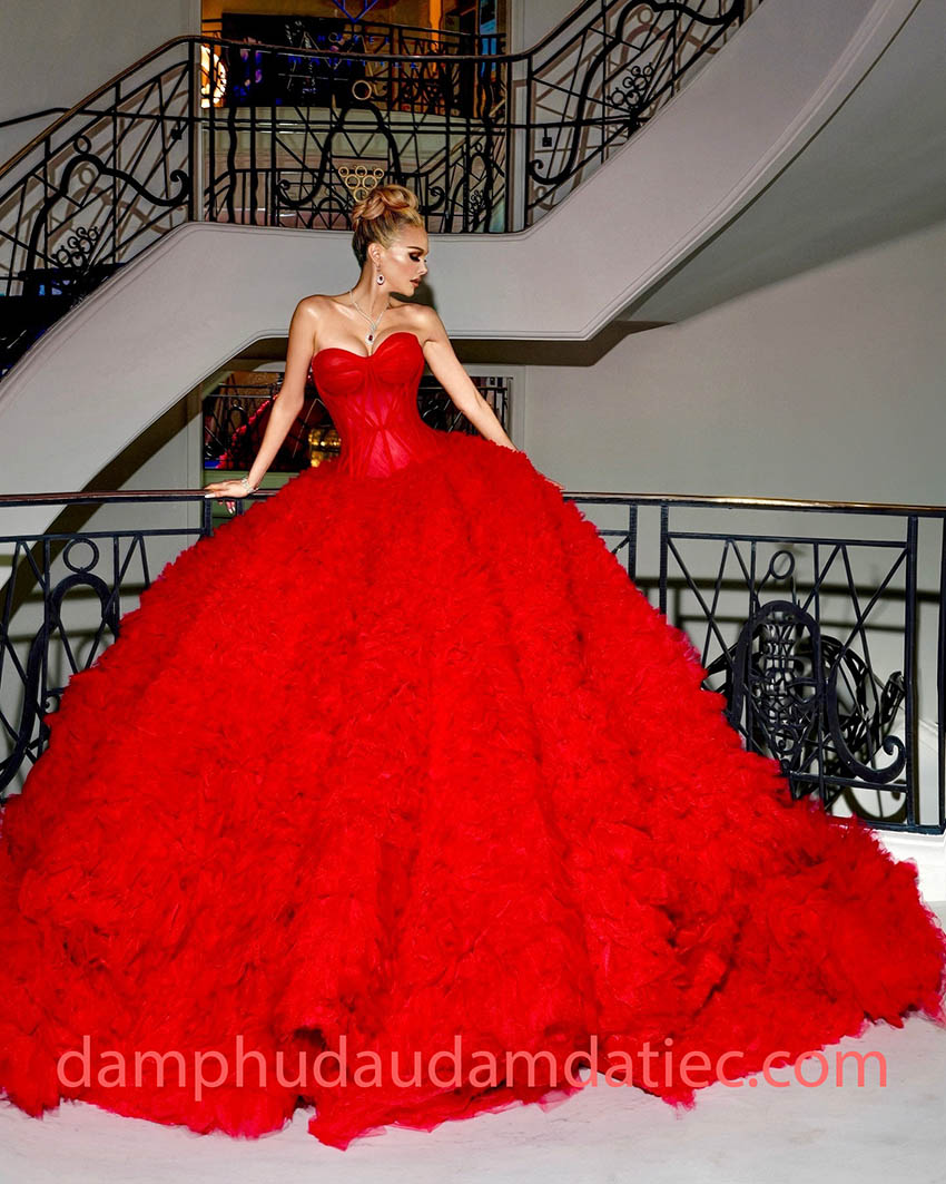 The outstanding silhouette of dramatic long train dresses and couture ball gowns with statement trains makes them an excellent choice for red carpet events, the grand ball, and special occasions. No one can remain indifferent to the most glamorous and glorious of this style.
