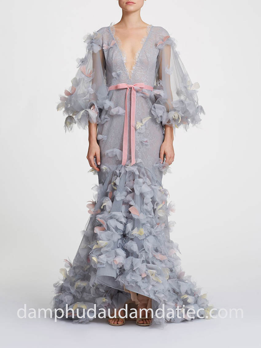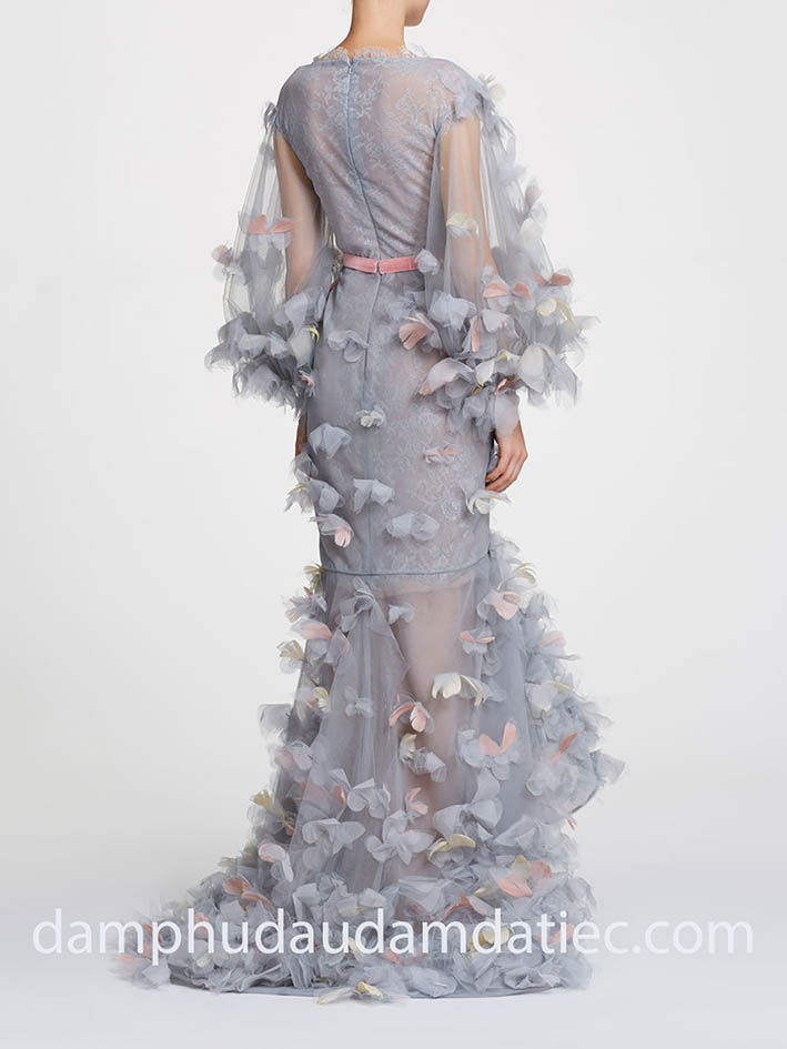 - 3D Floral Long Train Dress