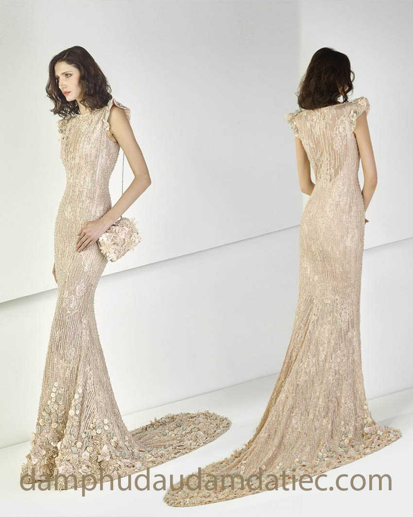 With its stunning silhouette and statement flair, an evening dress features a long train transforms an ordinary evening into a moment of truly enchantment.