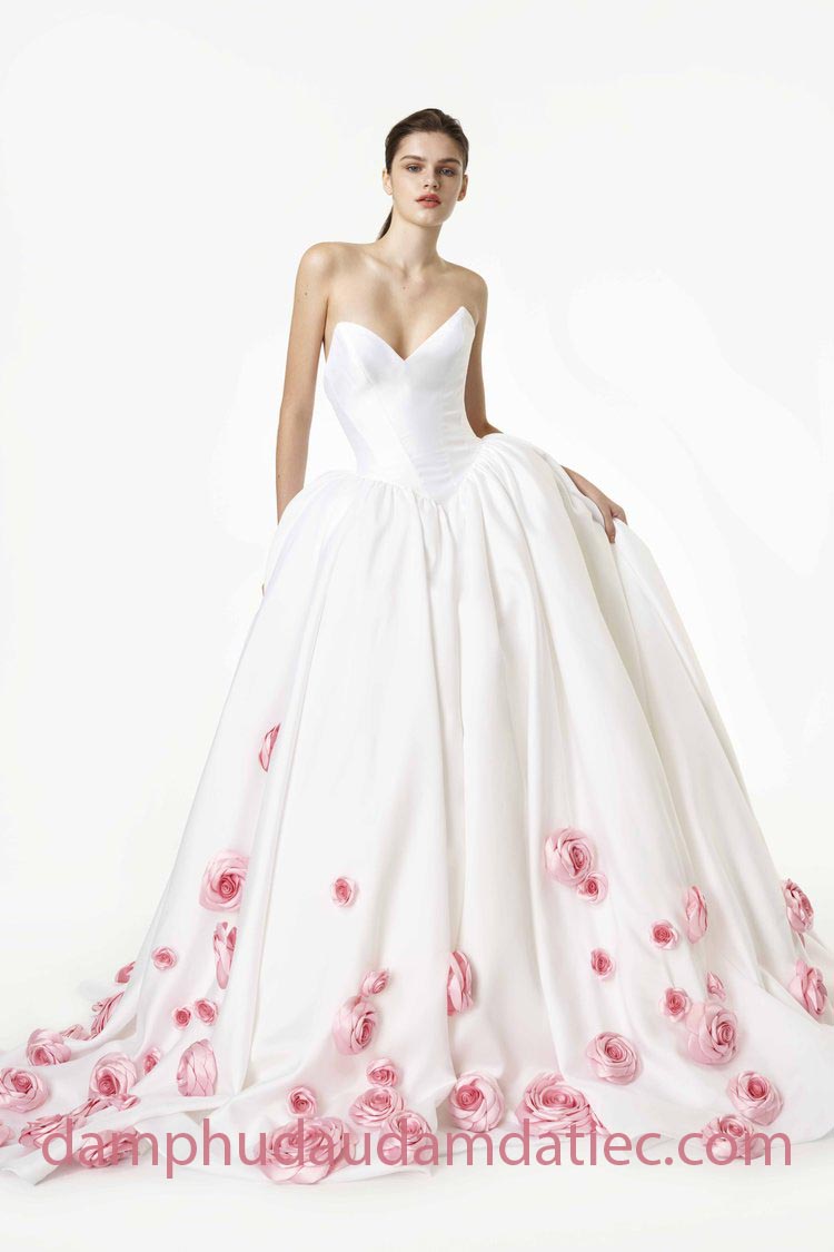 WHIMSICAL 3D FLORAL LONG TRAIN GOWN
