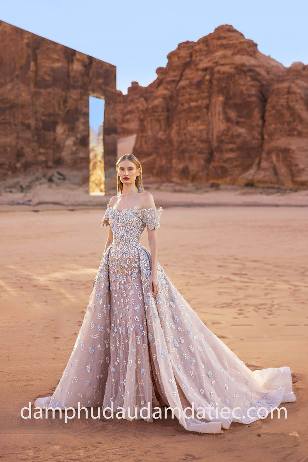 Elaborate long train overskirt evening dresses are versatile in that they gives you two looks in one. Stunning overskirt gowns with long trains are suitable for almost every formal event – a gala dinner, a ball, especially red carpet events and award ceremonies.