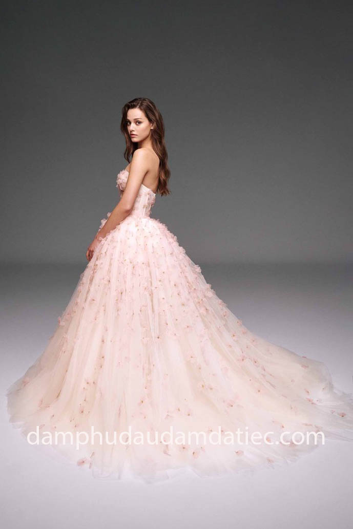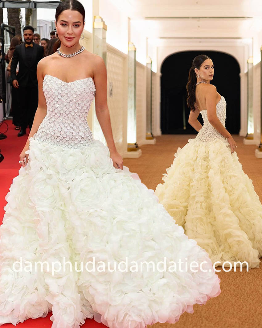 Nếu bạn muốn trở thành tâm điểm của mọi sự kiện, thì kiểu đầm dạ hội đuôi dài phối hoa 3D chính là lựa chọn không thể bỏ qua. Được trang trí bằng hoa 3D sống động và lộng lẫy, kiểu váy này sẽ nâng tầm phong cách và khiến mọi ánh mắt đều đổ dồn vào bạn. Một sự kết hợp hoàn hảo giữa lãng mạn và sự tinh tế!