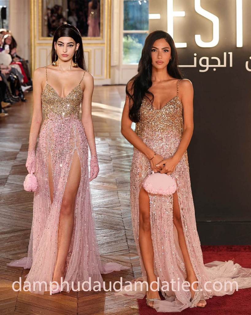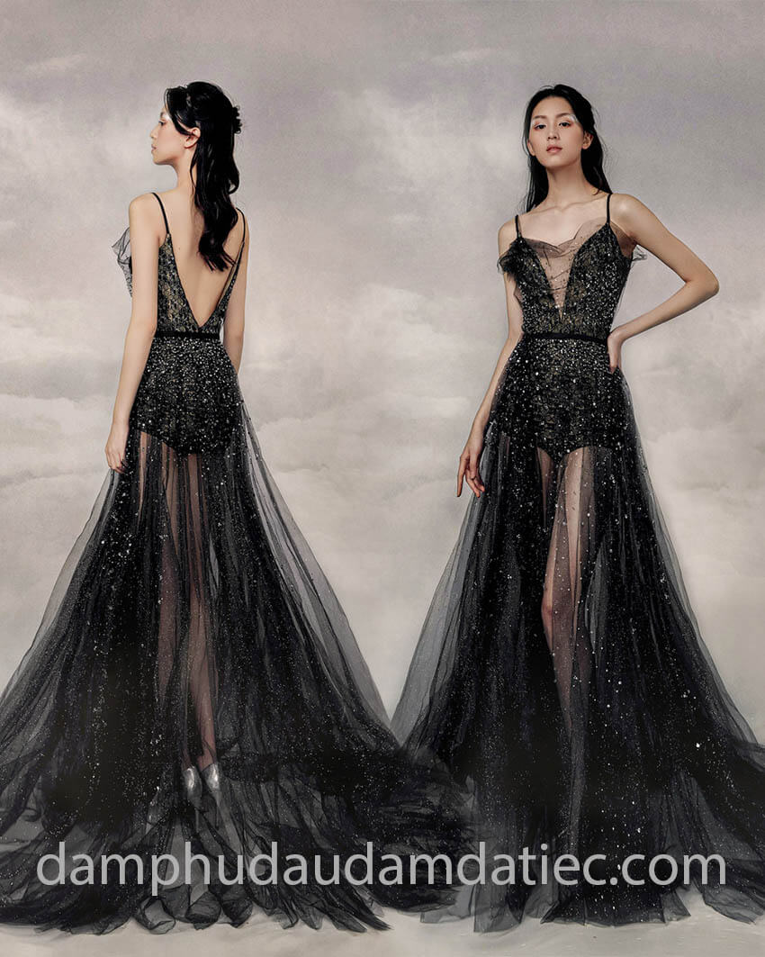 Diện lên người chiếc đầm dự tiệc đuôi dài lấp lánh bắt mắt, bạn sẽ khiến mọi ánh nhìn không thể rời mắt khỏi mình. Những chi tiết đính hạt cườm và đá pha lê tinh xảo không chỉ tạo ra hiệu ứng ánh sáng tuyệt đẹp mà còn mang đến một phong cách sang trọng, quyến rũ, hoàn hảo cho bất kỳ sự kiện nào.