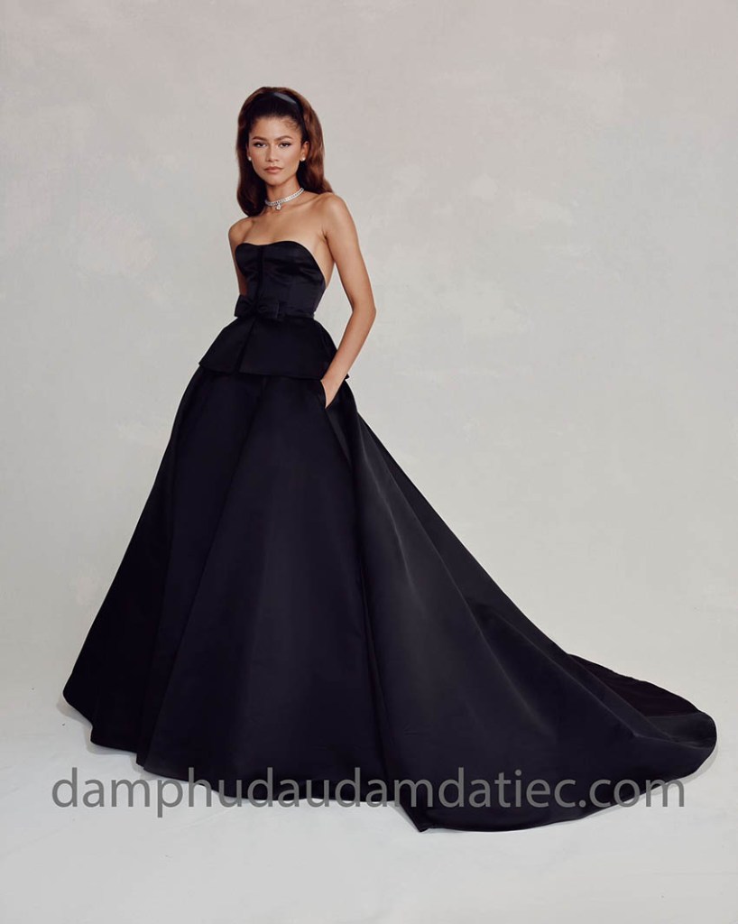 Để trở thành ngôi sao sáng trong mọi sự kiện, một chiếc váy dạ hội đuôi dài phong cách ấn tượng (dramatic) chính là lựa chọn hoàn hảo. Thiết kế tinh tế, đường nét hoàn hảo cùng đuôi dài lộng lẫy sẽ giúp bạn nổi bần bật giữa đám đông và khiến mọi người phải trầm trồ ngưỡng mộ.