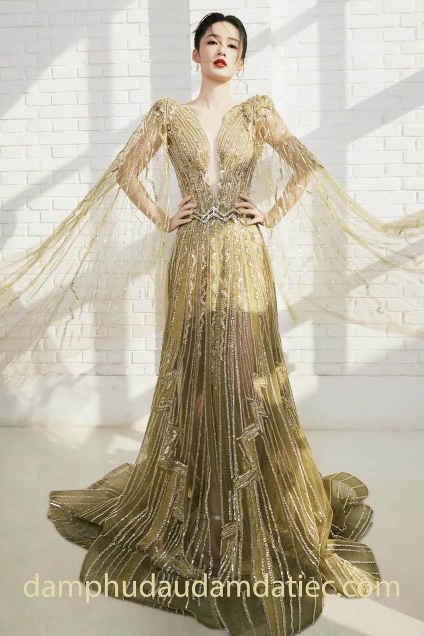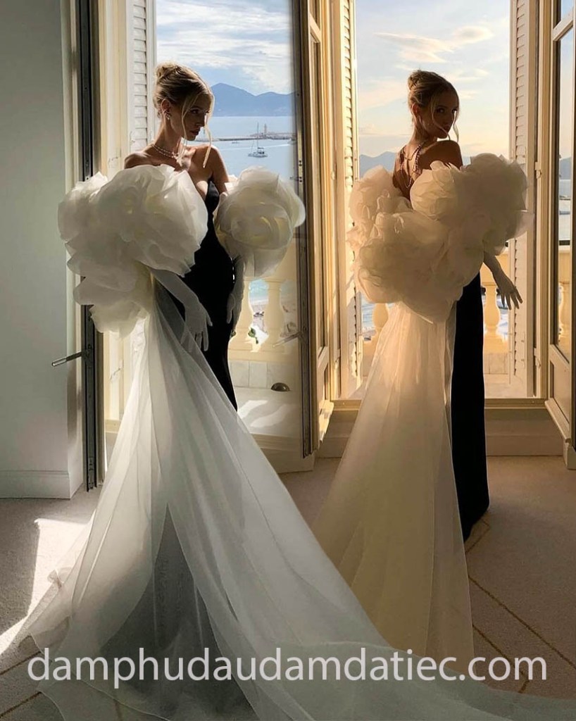 VÁY DẠ HỘI PHỐI ÁO CHOÀNG LỘNG LẪY—Khiến mỗi bước chân đều mang đậm dấu ấn Nữ hoàng với những thiết kế độc bản, chất liệu độc lạ và những chi tiết trang trí mang đậm dấu ấn cá nhân.