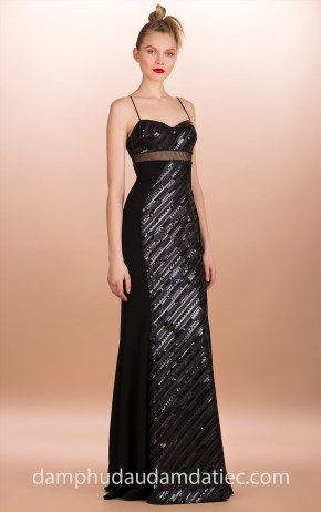 ĐẦM DẠ HỘI TEA LENGTH THÊU SEQUIN ĐÍNH LÔNG VŨ SANG CHẢNH NN5821